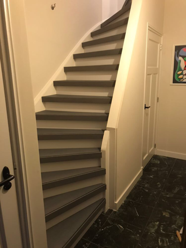 2 trappen voorzien van eiken overzettreden in Helmond, inclusief witte stootborden.